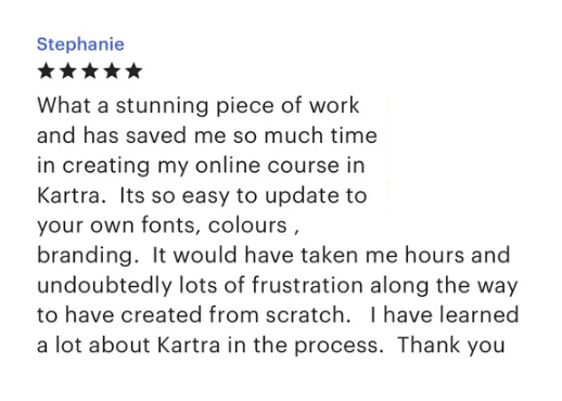 With each template purchase, you'll receive instructional videos on how to upload your templates into your Kartra account plus helpful videos on editing and working with your templates.